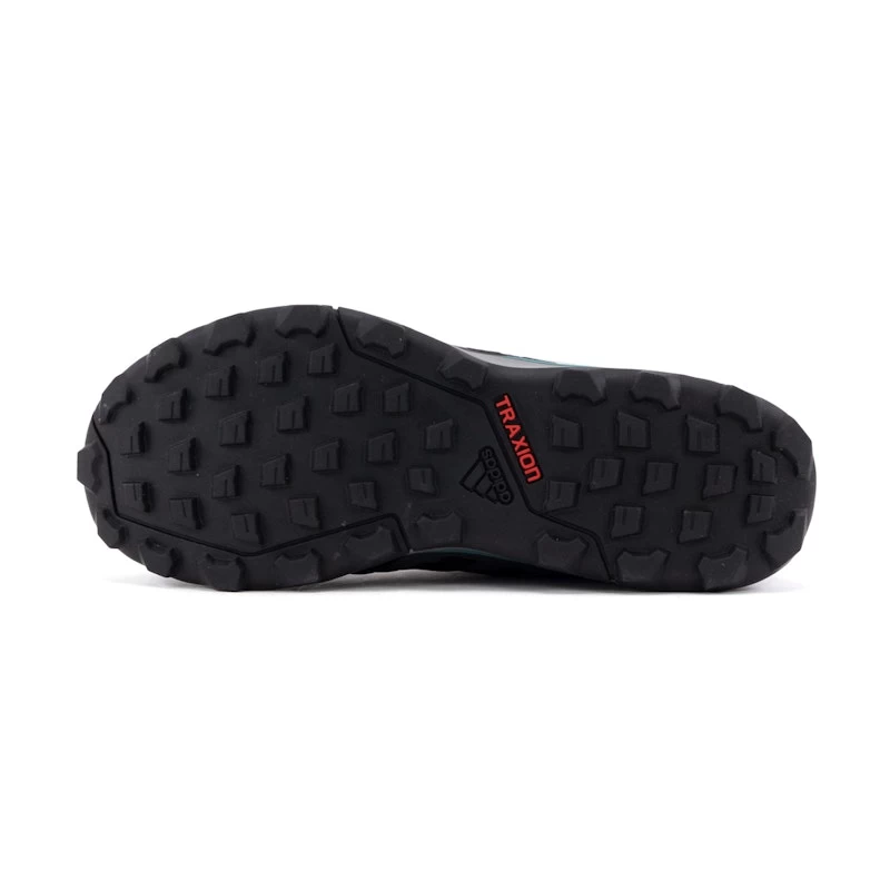 Une plaque de semelle intermédiaire au bas de la chaussure offre une protection contre les cailloux. La semelle extérieure Traxion avec crampons offre une bonne adhérence dans des conditions sèches et humides.