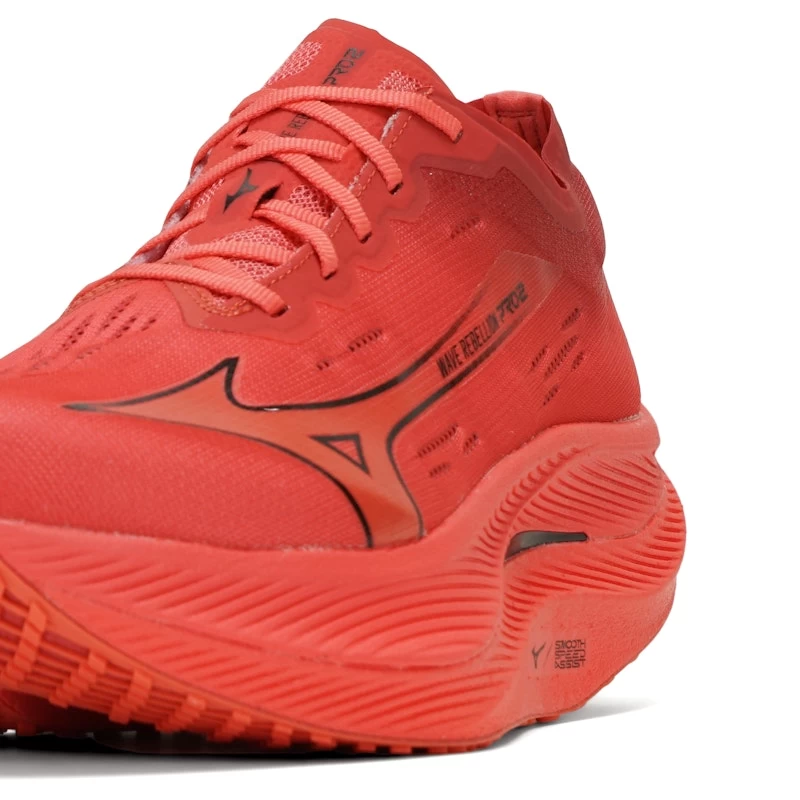 Le Wave Rebellion Pro 2 est synonyme de vitesse, donc deux mousses légères qui vous aideront à exceller. La chaussure contient Enerzy Lite+ dans la couche supérieure de la semelle intermédiaire et Enerzy Lite dans la couche inférieure. Les mousses sont constituées d’un matériau souple pour garantir un haut degré de retour d’énergie. Enerzy Lite+ et Enerzy travaillent en étroite collaboration pour offrir un amorti et une résilience optimaux. Pour gagner en vitesse, la chaussure est dotée d’une Wave Plate à base de carbone. Cette plaque de carbone s’étend sur toute la longueur de la semelle afin que vous ressentiez une sensation de stabilité du talon à l’avant-pied, et la plaque dure vous permet de rebondir rapidement après chaque pas, ce qui signifie encore plus de vitesse. Le design rond de la semelle repose sur des chaussures à pointes où le talon est également très relevé. Cela permet de bien atterrir sur le médio-pied et l’avant-pied en cas de fatigue. C’est ce qu’on appelle le Smooth Speed Assist, afin que vous continuiez à effectuer une déroulement idéale jusqu’à l’arrivée.