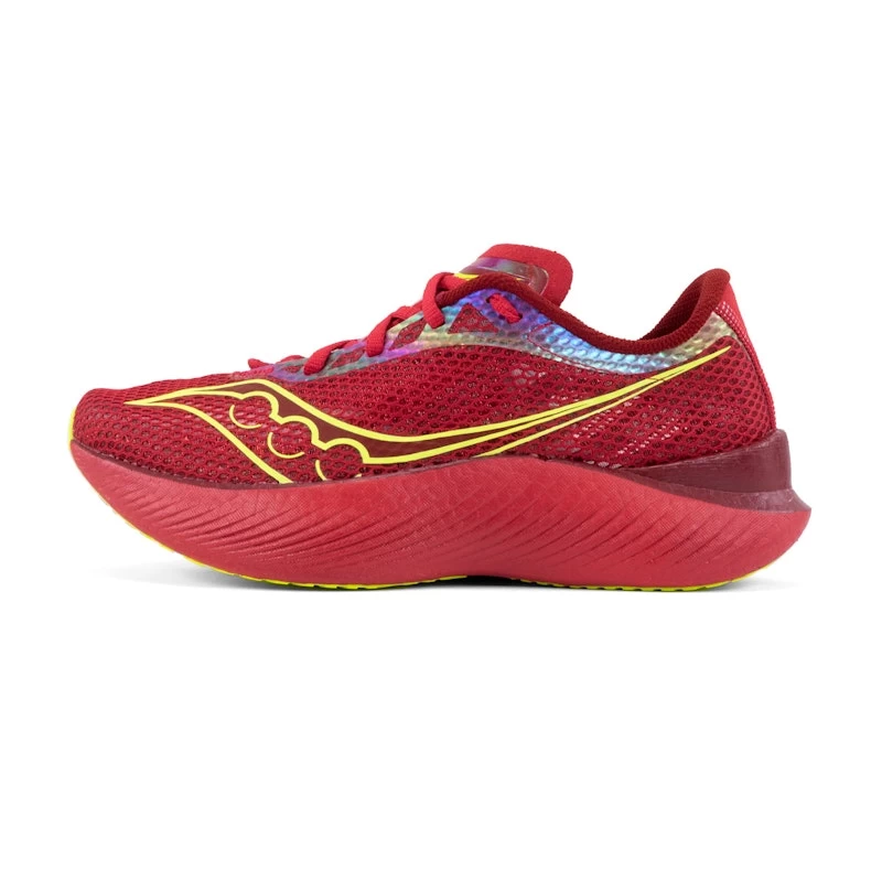 Une plaque de carbone n’est rien sans la bonne mousse qui l’entoure. Saucony a développé la mousse PWRRUNPB à cet effet. La mousse offre plus d’amorti, de sorte que les chaussures sont confortables pour marcher. Le PWRRUNPB est également 40% plus léger que le matériau EVA normal, qui est utilisé dans de nombreuses chaussures de course polyvalentes. Le velours PWRRUNPB de 39,9 mm de haut est conforme aux directives de World Athletics et vous donne l’avantage dont vous avez besoin.