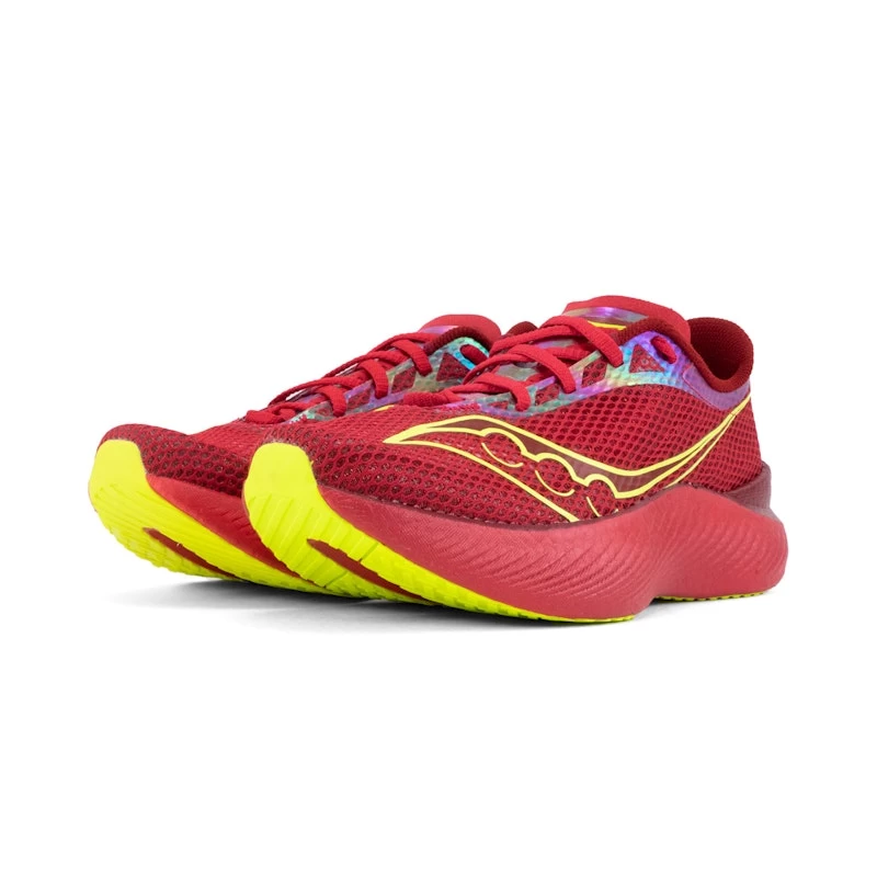 De plus, Saucony utilise également la technologie SPEEDROLL dans cette chaussure. Cela inclut la flexion de l’avant-pied en combinaison avec la semelle extérieure géométrique. Cela vous donne une bonne adhérence et stimule le tassement du pied. Cela donne l’impression d’être propulsé vers l’avant.